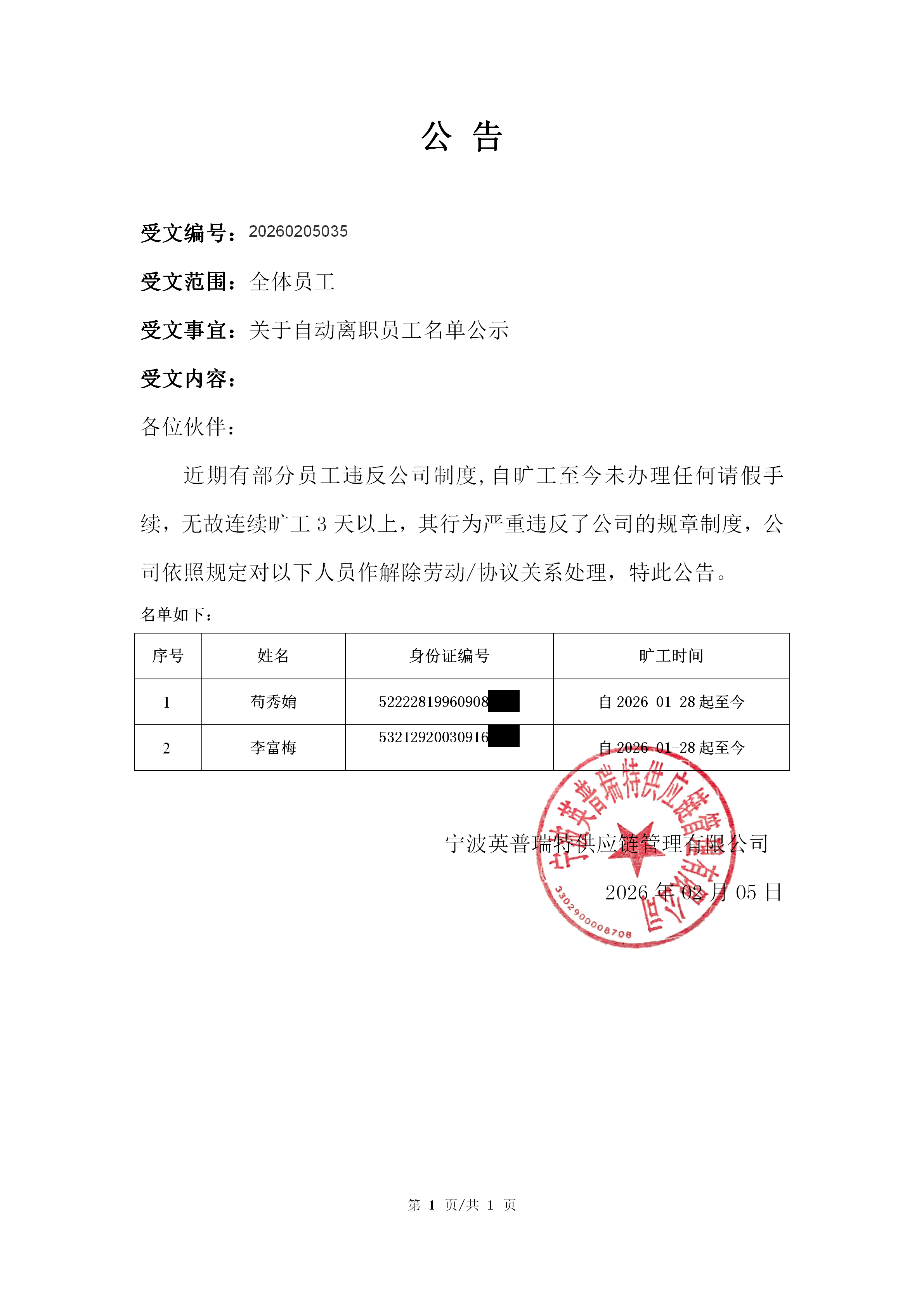 公告20260205035