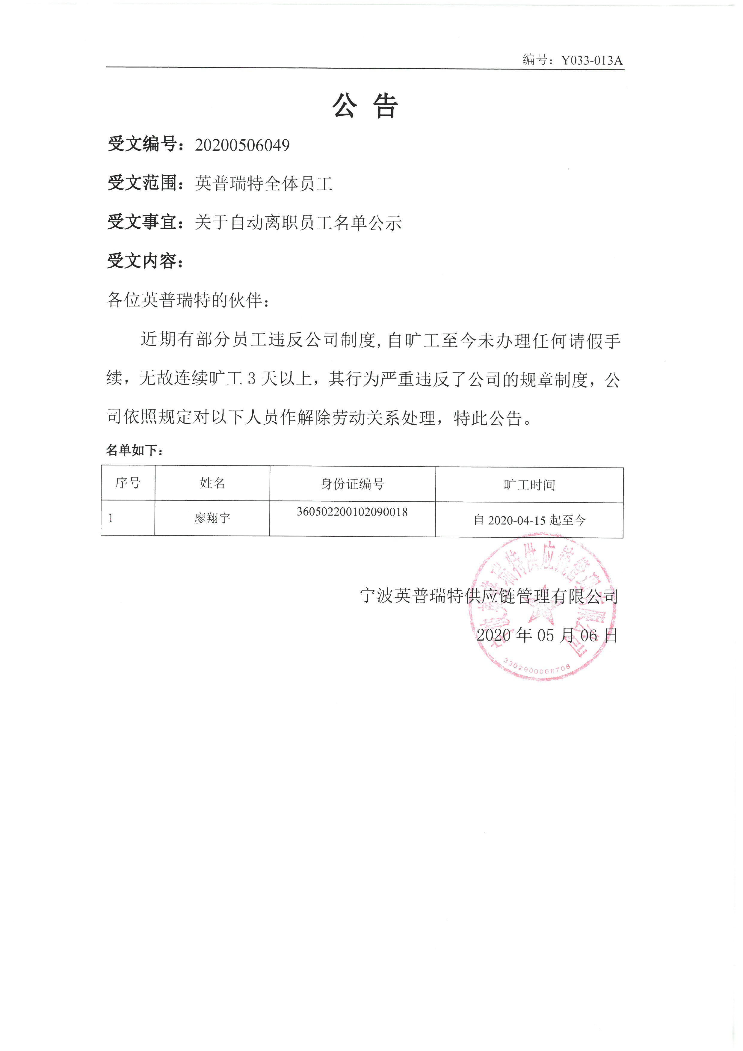 公告20200506049