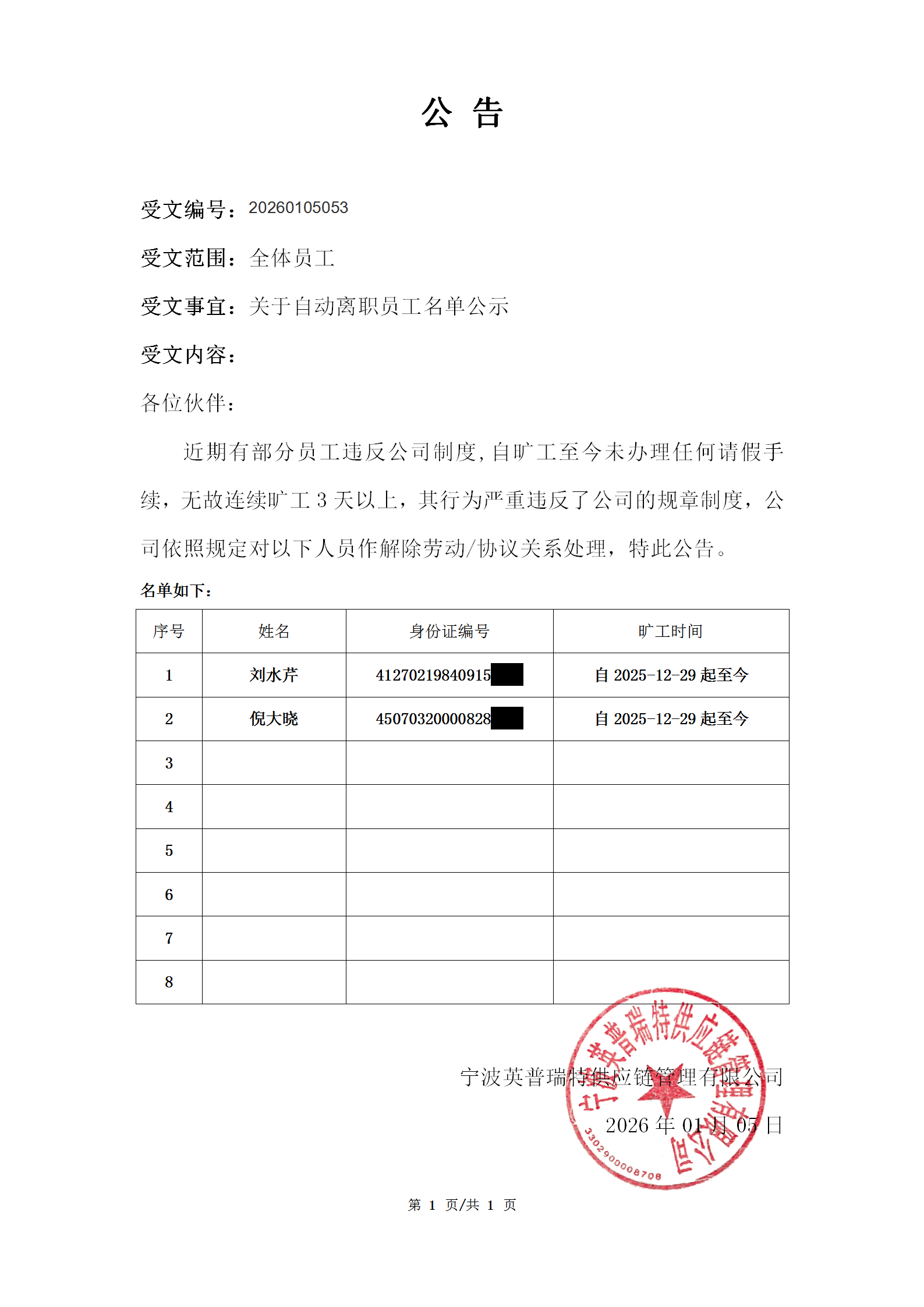 公告20260105053