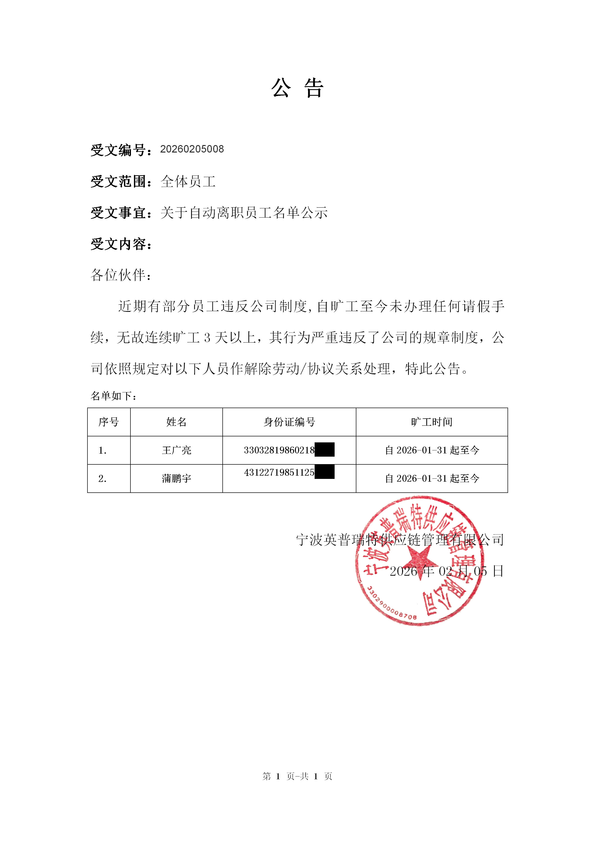 公告20260205008