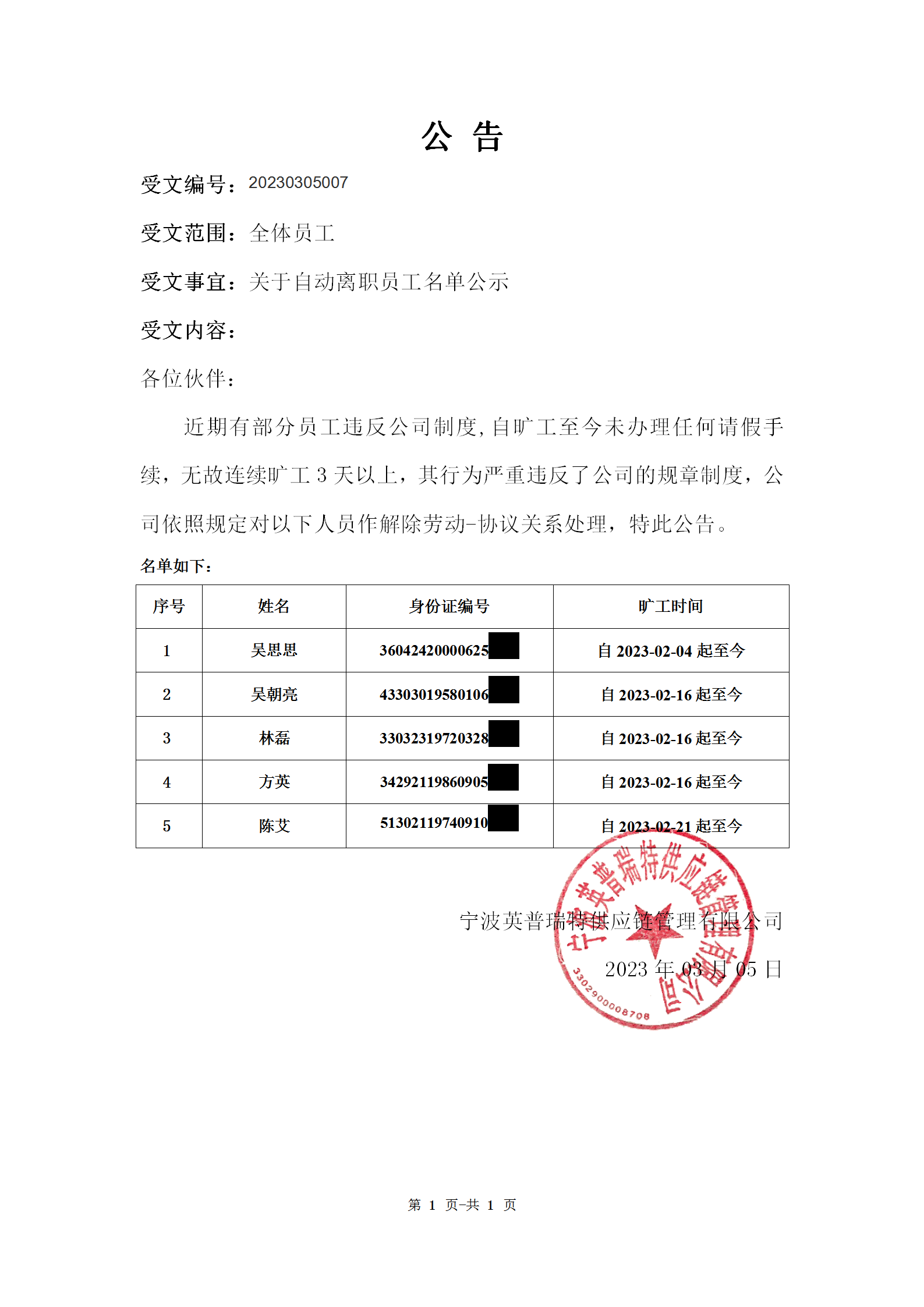 公告20230305007